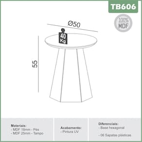 Itens Inclusos: 1 Mesa Lateral (TB606)