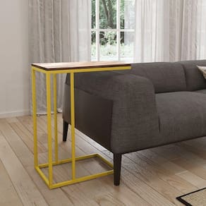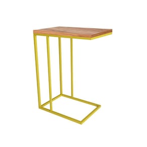 Mesa Lateral Industrial Elena Tampo Amendoa Base Ferro Amarelo - Cor: Preto