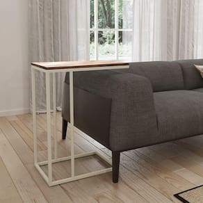 Mesa Lateral Industrial Elena Tampo Amendoa Base Ferro Off White - Cor: Branco