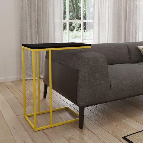 Mesa Lateral Industrial Elena Tampo Preto Base Ferro Amarelo - Cor: Preto