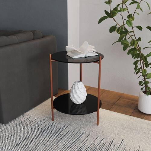 Mesa Lateral Industrial Premium Marbella Cobre Com Preto - Cor: Preto