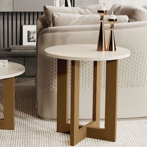 Mesa Lateral JB 8002 Luxo Off White com Nature - Moveis JB