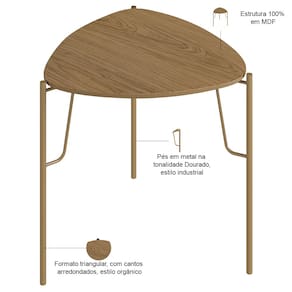 A Mesa Lateral Baixa Alef, da Lyam Decor, reinventa o conceito de móveis para sala de estar e living com seu formato triangular e cantos arredondados, unindo o estilo orgânico ao industrial.