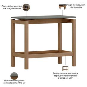 Estrutura em madeira maciça de pinus de reflorestamento e tampo em MDF.