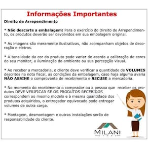 A tonalidade da cor do produto pode variar de acordo a calibração de cores do seu monitor, a iluminação do ambiente ou sua percepção visual.