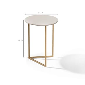 Mesa Lateral Pé De Ferro Estilo Industrial Dourado/off White