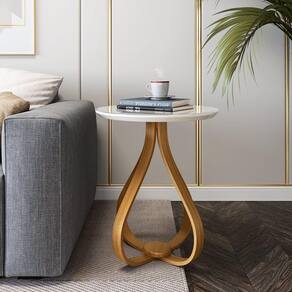 Mesa Lateral Redonda 60cm Rubi Branco / Mel