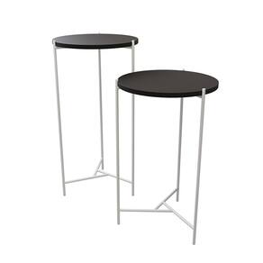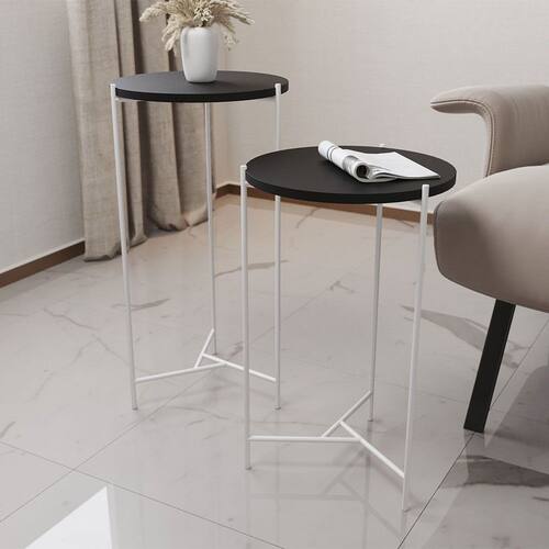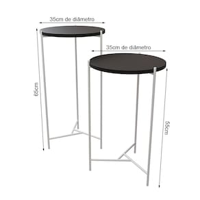 Mesa Lateral Redonda Áquila Branca E Tampo Preto Jogo de mesa lateral, design sofisticado e moderno, o estilo permite que você tenha total liberdade para deixar seu ambiente ainda mais elegante, tem um visual único e traz junto com elas variações de cores dando uma combinação perfeita para seu ambiente.