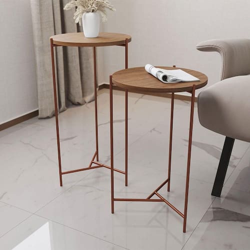 Mesa Lateral Redonda Ãquila Cobre E Tampo Imbuia