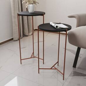 Mesa Lateral Redonda Áquila Cobre E Tampo Preto Jogo de mesa lateral, design sofisticado e moderno, o estilo permite que você tenha total liberdade para deixar seu ambiente ainda mais elegante, tem um visual único e traz junto com elas variações de cores dando uma combinação perfeita para seu ambiente.