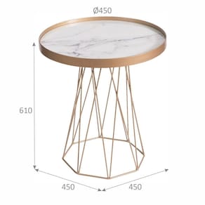 A mesa trama remete a arte de entrelaçar fios de metal entre si de forma delicada e artesanal. O acabamento interno do tampo em vidro marmorizado carrara traz leveza e sofisticação a peça. A base metálica traz uma proposta moderna e sofisticada para o ambiente, podendo ser utilizada em conjunto ou individualmente. Tampo bandeja com argola na cor dourada Ø450. Estrutura metálica na cor dourada H610 Acabamento da Base: Pintura Acabamento do Tampo: Vidro Ambiente Principal: Sala de Estar Complexidade da Montagem: Baixa: pode ser montado por uma pessoa sozinha Cor: Dourado Cor do Produto: Dourado Dobrável: Não Escala de Brilho: Fosco Espessura do Tampo: 3 mm Extensível: Não Itens Inclusos: TAMPO E BASE Linha ou Coleção: TRAMA Manual de Montagem e Instalação: https://cdn2.madeiramadeira.com.br/atributo/portal/2041184-5749-17181321643508.pdf Material da Base: Metal Material do Tampo: Vidro/MDF Material Principal: MDF Medida do Tampo (L x C x E): 40 Necessita Montagem: Sim Origem do Produto: Nacional Peso: 5 kg Possui Base: Sim Possui Espelho: Não Possui Possui Gavetas: Não Possui Portas: Não Possui Prateleiras: Não Possui Rodízio: Não Possui Suporte Giratório: NAO Recomendações de Uso, Manutenção e Limpeza: PANO SECO. NÃO USAR PRODUTOS ABRASIVOS Sistema de Montagem: FIXAR OS PARAFUSOS ENTRE BASE E TAMPO Suporta Até (kg): 5 kg