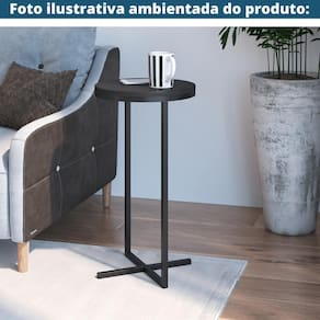 Mesa Lateral Redonda Volpi Artesano 56 cm (altura) em MDP Preto Estrutura Metálica em Aço Preto