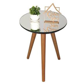 Medidas • Altura: 50 cm • Diâmetro tampo: 40 cm • Cor: Preta com Espelho • Pés palito: Madeira