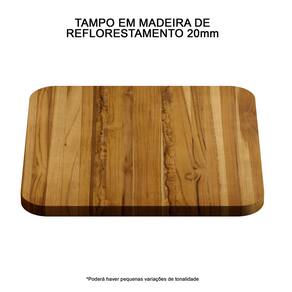 Tampo em madeira maciça de reflorestamento, pode haver variação de tonalidades e veios.