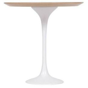 Mesa Lateral Saarinen Redonda, Tampo 51 cm em MDF Laminado em Madeira, com contra tampo em MDF, Base em alumínio fundido com pintura automotiva PU.