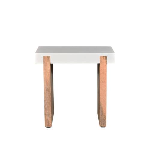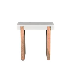 A mesa lateral retangular Urban Port Kerry de 20 polegadas, madeira de manga, base de trenó, branco brilhante e marrom natural