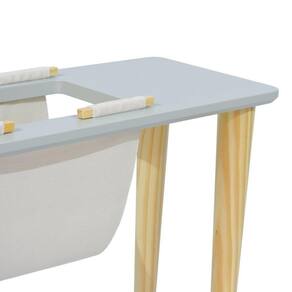- Materiais: Produzido o tampo em MDF laqueado e pés de madeira maciça de pinus torneados envernizado