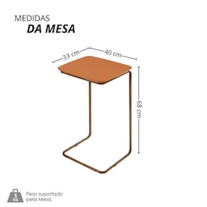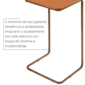 Uma mesinha elegante e funcional, ideal para a sala de estar. Com tampo em MDF que oferece resistência e um acabamento refinado, ela combina durabilidade com estilo. Sua base em aço garante estabilidade e um design contemporâneo, adicionando um toque moderno ao ambiente. Perfeita para apoiar objetos decorativos ou utilitários, unindo praticidade e sofisticação. Ambiente Principal: Sala de Estar Cor: Terracota/Café Cor do Produto: Terracota/Café Escala de Brilho: Fosco Itens Inclusos: 1 Mesa Manual de Montagem e Instalação: https://product-hub-prd.madeiramadeira.com.br/976087/documents/f864ed85-48c2-4ae1-9086-f69cf26904142655889493817381771997188.pdf Marca: Larflex Material do Tampo: MDF Material Principal: MDF Necessita Montagem: Não Origem do Produto: Nacional Peso: 2,9 kg Possui Espelho: Não Possui Possui Gavetas: Não Possui Portas: Não Possui Prateleiras: Não Recomendações de Uso, Manutenção e Limpeza: Um pano seco e um pano levemente umedecido, evitar alvejantes e produtos de limpeza. Suporta Até (kg): 5 kg