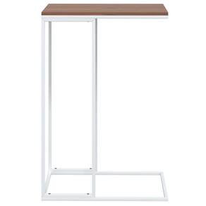 Esta mesa lateral moderna tem um acabamento fresco em branco e marrom que aprimora o estilo de qualquer ambiente. Graças ao seu formato inteligente em C, ele se encaixa perfeitamente em sofás ou cadeiras. A tampa plana é perfeita para exibir seus petiscos favoritos ou servir lanches, tornando-se uma adição fabulosa a qualquer espaço doméstico, especialmente aqueles cantinhos confortáveis da sala de estar ou do quarto