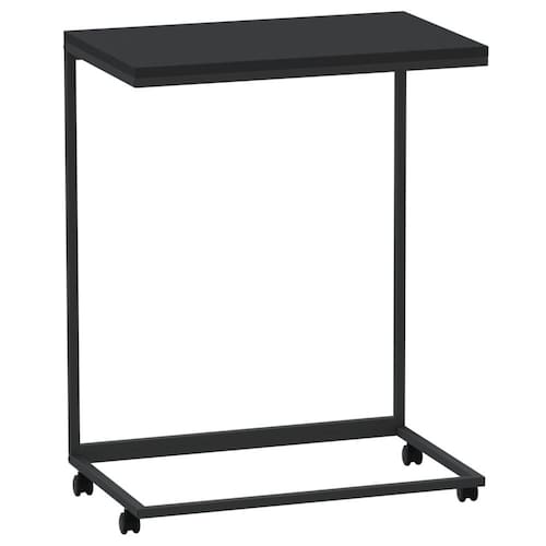 Mesa lateral com rodas preta 55x35x70 cm de madeira projetada -