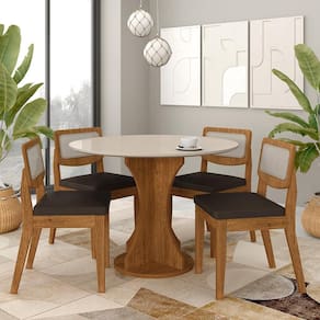 Mesa de Jantar Linares com 4 cadeiras sextavada, ela é compacta, moderna e perfeita pra quem ama receber bem! Garanta já a sua!