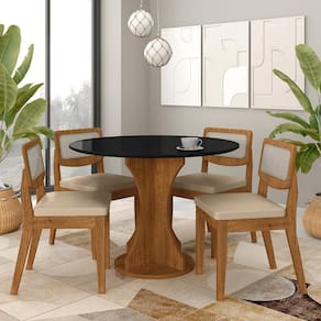 Mesa de Jantar Linares com 4 cadeiras sextavada, ela é compacta, moderna e perfeita pra quem ama receber bem! Garanta já a sua!