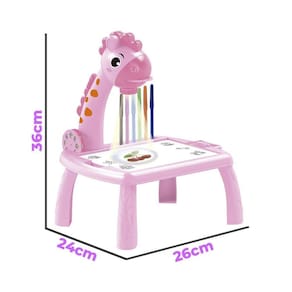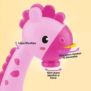 Mesa Lousa Projetora Desenhos Infantil Rosa Castela Brasil Agora os pequenos podem aprender e se divertir ao mesmo tempo. O projetor com lousa é ideal para despertar o lado artístico das crianças, pois ele conta com vários artifícios que permitem que a imaginação voe alto, desenvolvendo muitas práticas lúdicas e criativas por meio de desenhos, imagens e sons. A girafinha que é o personagem principal da brincadeira, tem seu pescoço articulado e pode ser girado para ambos os lados, podendo ser retirado da base. A base da lousa conta com espaços para colocar as canetinhas e os discos de projeção. São 3 discos de projeção com 8 desenhos diferentes em cada disco 24 desenhos no total . As crianças podem desenhar na mesa ou no caderninho de desenho. O diferencial é que ao projetar um desenho na lousa a criança poderá usar as canetinhas para fazer o contorno do desenho, auxiliando no exercício de coordenação motora e caso deseje apagar os desenhos feitos na lousinha poderá usar o apagador já incluso. O brinquedo também acompanha 12 canetinhas coloridas.