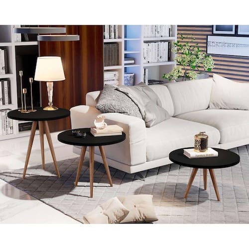 Mesa apoio redonda 100% MDF. Com pés em madeira em formato palito. Possui um tampo de 600 mm de diâmetro e 20 mm de espessura. Tem 670 mm de altura e faz composição com outros móveis dessa linha mesa de apoio 8015 E 8016."