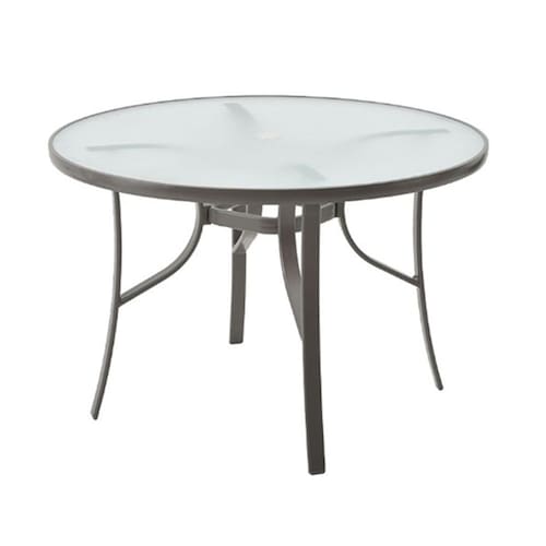 Nossa Mesa Macaé - Amêndoa vem trazendo modernidade e beleza em seu design, além de poder também ser usada em ambientes externos! Sendo de alumínio com tampo de vidro temperado e jateado, ela irá se adequar perfeitamente na sua área externa!