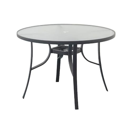 Procurando uma mesa para o seu ambiente externo? A Mesa Macaé - Grafite vem trazendo modernidade e beleza em seu design, sendo de alumínio com tampo de vidro temperado e jateado, ela irá se adequar perfeitamente na sua área externa!