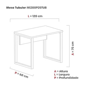 Mesa Madeira 1200x600mm M120/60p25tub Preto