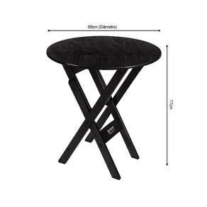 Características Tipo: Conjunto Mesa e Cadeiras Modelo: Redonda Dobrável Cor: Preto Estrutura em madeira resistente Acabamento natural e visual rústico Uso em ambientes internos ou externos cobertos