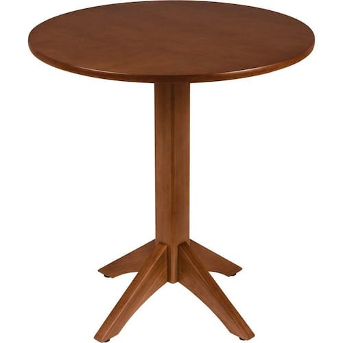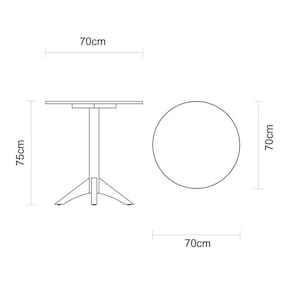 Mesa de madeira tauarí.Acabamento com verniz tingido de amê redondo de 70 cm. Produto entregue desmontado.