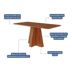 Mesa Maitê de 1,60x,0,80. Que tal reunir a sua família para um jantar? Nesse momento a Cimol vai está presente, proporcionando situações agradáveis e descontraídas! A mesa Maitê possui uma base em formato cruz, seu tampo é em MDF laminado com bordas chanfradas e acabamento em laca. Com um design inovador, a Cimol busca sempre um estilo moderno para o seu ambiente! Acabamento: Pintura UV Acabamento da Base: Pintura UV Ambiente Principal: Sala de Jantar codigo_ean: 7909903861325 Complexidade da Montagem: Média: pode ser montado por mais de uma pessoa e/ou necessite de maior conhecimento para montagem Cor: Cinamomo Cor do Produto: Cinamomo Dobrável: Não Escala de Brilho: Semi-Brilho Espessura do Tampo: 25 mm Extensível: Não Itens Inclusos: 1 Mesa, Kit Ferragens e Manual de Montagem Manual de Montagem e Instalação: https://product-hub-prd.madeiramadeira.com.br/922418/documents/cac1c9ab-a763-49dc-9b64-e3f17ebb68dc2208701503517232113573924.pdf Material da Base: MDF Material do Tampo: MDF Material Principal: MDF Medida do Tampo (L x C x E): 80 x 160 x 2,5 Necessita Montagem: Sim Origem do Produto: Nacional Peso: 43,7 kg Possui Rodízio: Não Possui Vidro: Não Recomendações de Uso, Manutenção e Limpeza: Para manter seu móvel novo por muito mais tempo, evite locais úmidos, mantenha-o distante de líquidos. Para limpá-lo com segurança utilize uma flanela seca sem produtos abrasivos Sistema de Montagem: Parafusos, Sapata lisa longa e Conector Suporta Até (kg): 40 kg