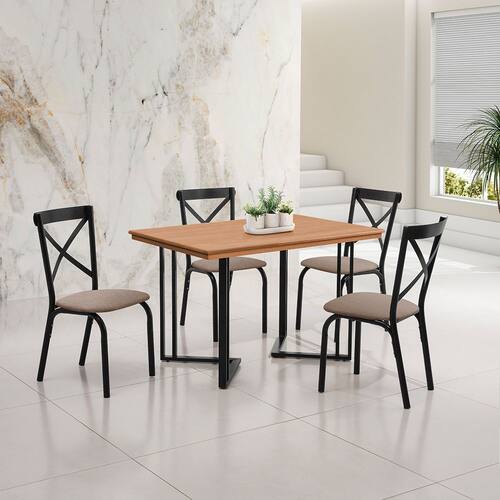 Sua estrutura em madeira maciça garante durabilidade e resistência, enquanto a base em ferro confere um toque moderno e industrial, resultando em uma peça versátil que harmoniza facilmente com diferentes estilos de decoração. O amplo tampo proporciona conforto e praticidade para reunir familiares e amigos em momentos especiais.