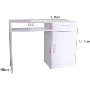 A Escrivaninha com Gaveta e Porta da Klithovit Decor, é a escolha ideal para quem busca um móvel funcional e elegante para salão de beleza ou uso doméstico. Com um design que alia beleza e praticidade, esta mesa é perfeita para profissionais que desejam um espaço de trabalho organizado e estiloso. A mesa é equipada com corrediças telescópicas que asseguram uma abertura e fechamento suaves da gaveta. Os puxadores em alumínio trazem um toque moderno ao design, enquanto as sapatas plásticas garantem estabilidade e segurança. Dimensões: Mesa: Comprimento: 110 cm Largura: 40 cm Altura: 80,5 cm Gaveta (Medidas Internas): 37 cm x 32 cm x 10,5 cm Compartimento com Porta (Medidas Internas): 42,5 cm x 37 cm x 58 cm Prateleira: 62,5 cm x 11,5 cm Material: Confeccionada em MDF de 15 mm, a mesa apresenta um acabamento de alta qualidade, garantindo resistência e durabilidade para o uso diário em ambientes de beleza. Montagem: O produto é enviado desmontado. A montagem é de responsabilidade do comprador e o kit inclui um manual de montagem detalhado, com instruções claras e todos os parafusos e tapa furos necessários para facilitar o processo. Limpeza: Para manter sua mesa em ótimo estado, utilize um pano levemente umedecido com água e seque com um pano seco, garantindo a preservação do acabamento. Atenção: A mesa não acompanha itens decorativos e não produzimos sob medida, mas sua versatilidade e estilo a tornam uma adição valiosa a qualquer espaço de beleza, proporcionando organização e funcionalidade. Boas Compras!