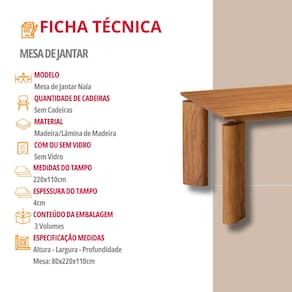 Dimens?es da Mesa: Altura: 80 cm Largura: 220 cm Profundidade: 110 cm Peso: 93,3 kg