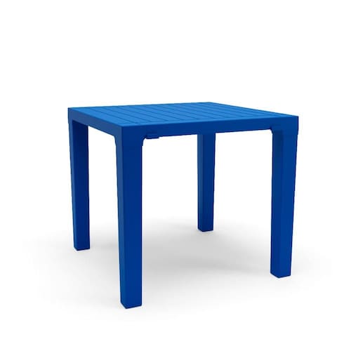 Mesa Niala Quadrada Azul Bic 80cm em Polipropileno Plaxmetal, ideal para ambientes internos e externos, com design moderno, resistente e de fácil limpeza. Possui dimensões de 80x80x72,5 cm de altura, acomodando confortavelmente até 4 lugares, sendo perfeita para cozinhas, áreas gourmet, varandas, bares e restaurantes. Fabricada em polipropileno de alta qualidade, oferece durabilidade, estabilidade e excelente acabamento, contando ainda com furação central que permite a instalação de ombrelone, proporcionando mais conforto e funcionalidade ao ambiente.