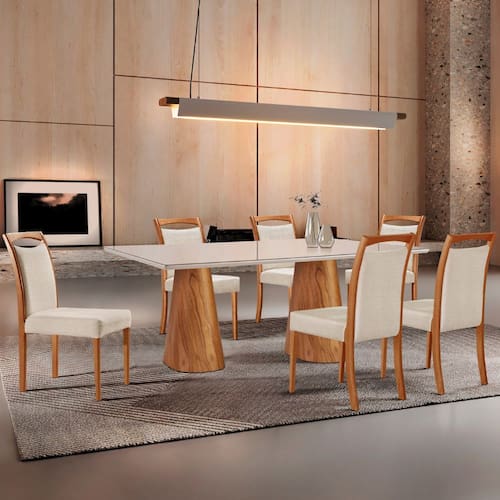 Com o Conjunto Sala de Jantar Noronha e Cadeiras Munique, você transforma sua sala de jantar em um ambiente que une elegância natural, sofisticação e conforto.
