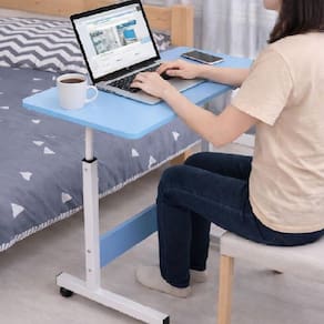 Mesa para Notebook Azul Ajustável com Rodinhas Multiuso para Cama, Sofá e Home Office