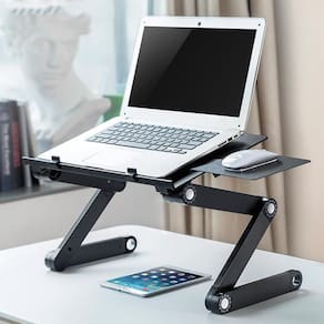A mesa multifuncional articulável é tudo que você esperava e um pouco mais. Super versátil, você pode utilizá-la onde quiser Ela foi fabricada pensando primeiramente em praticidade e facilidade na hora de montar e usar, sendo utilizada como suporte para seu notebook, tablet ou para fazer leitura de jornais ou revistas. Para isso, ela se dobra na altura ideal para ser Utilizado confortavelmente na cama ou no sofá, sem comprometer sua postura e seu bem estar e ainda possui um exclusivo sistema multiposição que é ideal para ajustar seu formato de acordo com sua necessidade. Além disso, conta com um apoio especial para usar o mouse. No escritório, ela é excelente para usar sobre a mesa e posicionar o notebook corretamente na altura dos olhos, evitando dores na coluna e pescoço, além de elevar o teclado na altura ideal para digitar, assim os braços não ficam mal posicionados e os punhos não sofrem atrito com a quina da mesa por exemplo. Sempre que quiser, desmonte e guarde sua mesa ou transporte com facilidade para outro local. Características: Material: estrutura liga de alumínio, tampo em abs e hastes de polipropileno. Suporta até 10kg; Compatível com notebooks até 19''. Medidas: 42 x 26 cm tampo maior , 16 x 18 cm tampo mouse , 48 cm altura máxima Peso: 1,2 kg Conteúdo da embalagem: 01 suporte articulado 01 suporte para mouse Homologação Anatel: 001001903229 Ean: 6012512730799