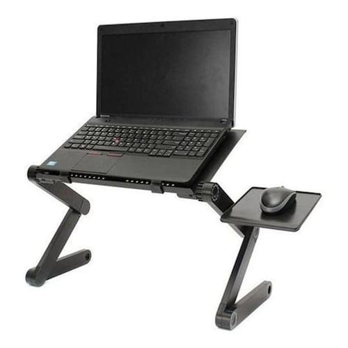 Mesa Notebook Multifuncional Articulável T8 - PretoA mesa multifuncional articulável é tudo que você esperava e um pouco mais. Super versátil, você pode utilizá-la onde quiser Ela foi fabricada pensando primeiramente em praticidade e facilidade na hora de montar e usar, sendo utilizada como suporte para seu notebook, tablet ou para fazer leitura de jornais ou revistas. Para isso, ela se dobra na altura ideal para ser usada confortavelmente na cama ou no sofá, sem comprometer sua postura e seu bem estar e ainda possui um exclusivo sistema multiposição que é ideal para ajustar seu formato de acordo com sua necessidade. Além disso, conta com um apoio especial para usar o mouse. No escritório, ela é excelente para usar sobre a mesa e posicionar o notebook corretamente na altura dos olhos, evitando dores na coluna e pescoço, além de elevar o teclado na altura ideal para digitar, assim os braços não ficam mal posicionados e os punhos não sofrem atrito com a quina da mesa por exemplo. Sempre que quiser, desmonte e guarde sua mesa ou transporte com facilidade para outro local.Medidas aproximadas do produto- Comprimento: 22 cm- Altura: 15 cm- Largura: 15 cm- Peso: 1200 g