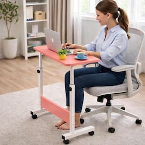 A Mesa Multiuso para Notebook com Rodinhas Ajustável Rosa é a solução ideal para quem busca conforto, mobilidade e praticidade no home office, estudos ou uso diário no quarto e sala. Com altura regulável e rodízios com trava, permite ajustar facilmente a posição para trabalhar com mais ergonomia e eficiência.