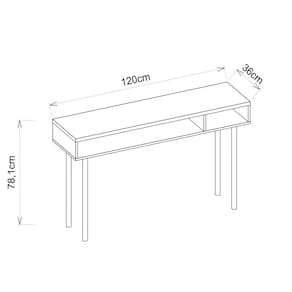 Mesa Office Retro Megan Caemmun possui pés em madeira marroml com design usinado cilíndrico, que destaca elegância e o toque da marcenaria em uma peça multiambiente. Possui em sua estrutura 01 tampo e 01 nicho