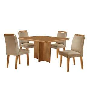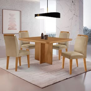 Mesa Olimpia 90 MDF canto copo e com 4 Cadeiras Athenas - Bege Médio