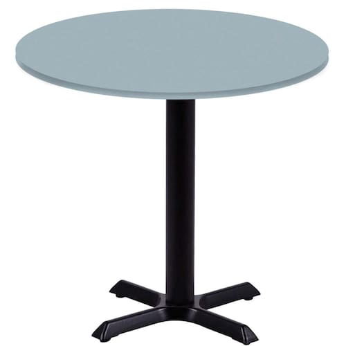 Mesa Ômega Ferro Preto 74 cm (Alt) Base em X Tampo MDP Redondo 60 cm (Larg) x 2,50 cm (Alt) Cinza