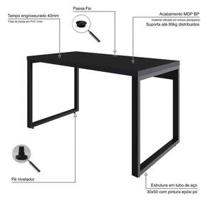 Mesa Operacional 135x70x75cm Yon Preto Tx/ Preto Tx/