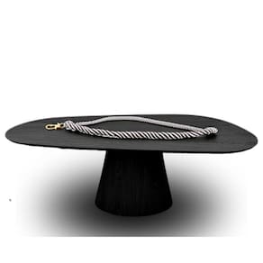 Dimensões:Altura: 75 cm Medidas Comporta 8 CadeirasBase Oval MDF Laminada em ébano Lamina l. (podendo escolher outras cores lamina)Tampo da mesa. MDF Melamina de 18 mm Chanfrado.