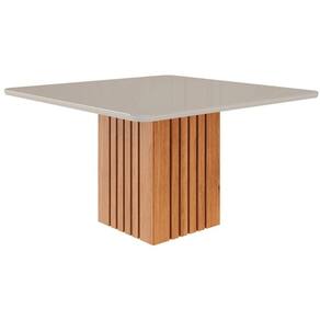 Mesa de Sala Jantar Ana c/ Tampo Madeirado c/ Vidro 130x130cm Cinamomo/Off White - Cimol