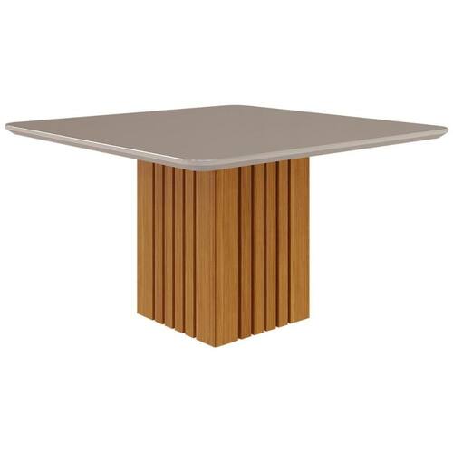 Mesa de Sala Jantar Ana c/ Tampo Madeirado c/ Vidro 130x130cm Nature/Off White - Cimol